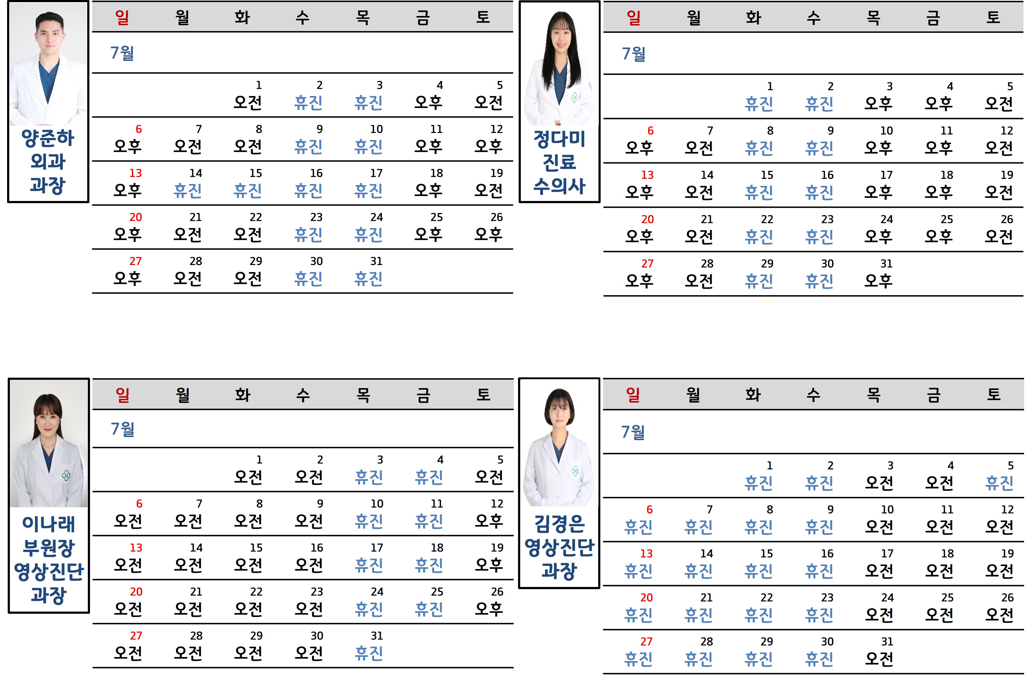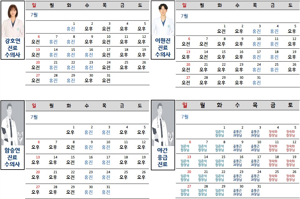 2025년 7월 진료시간표 안내