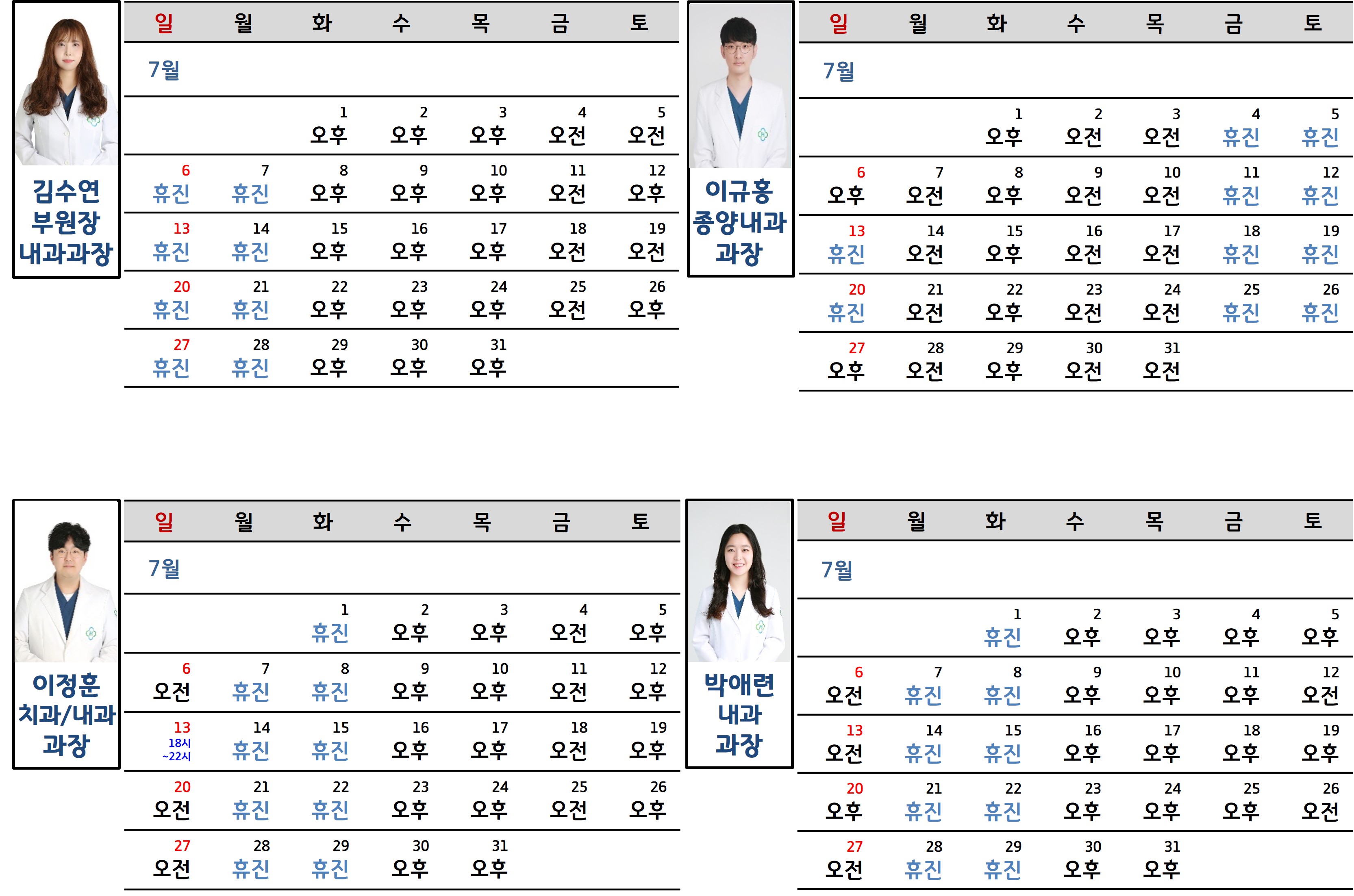 의료진 진료 시간표