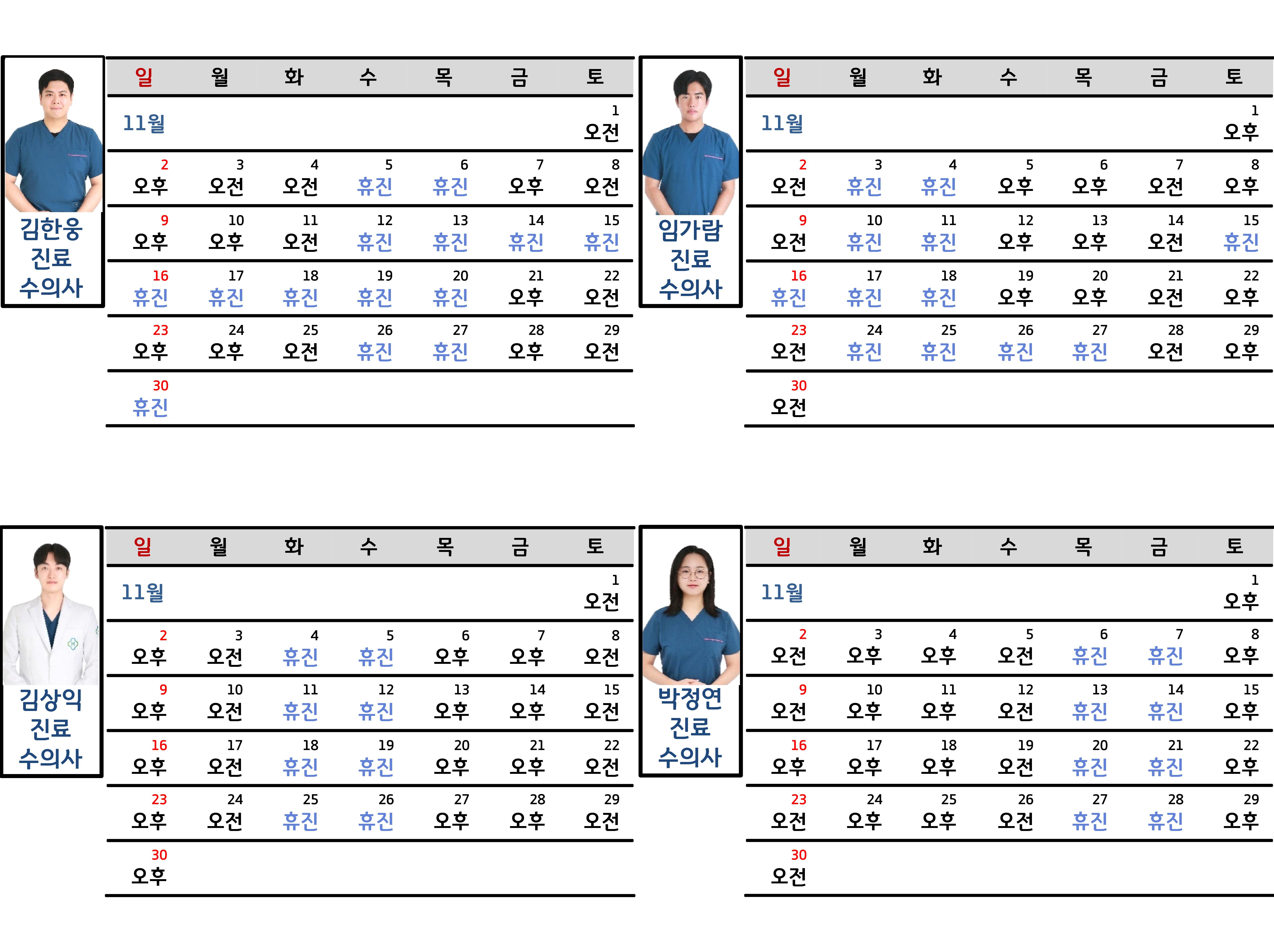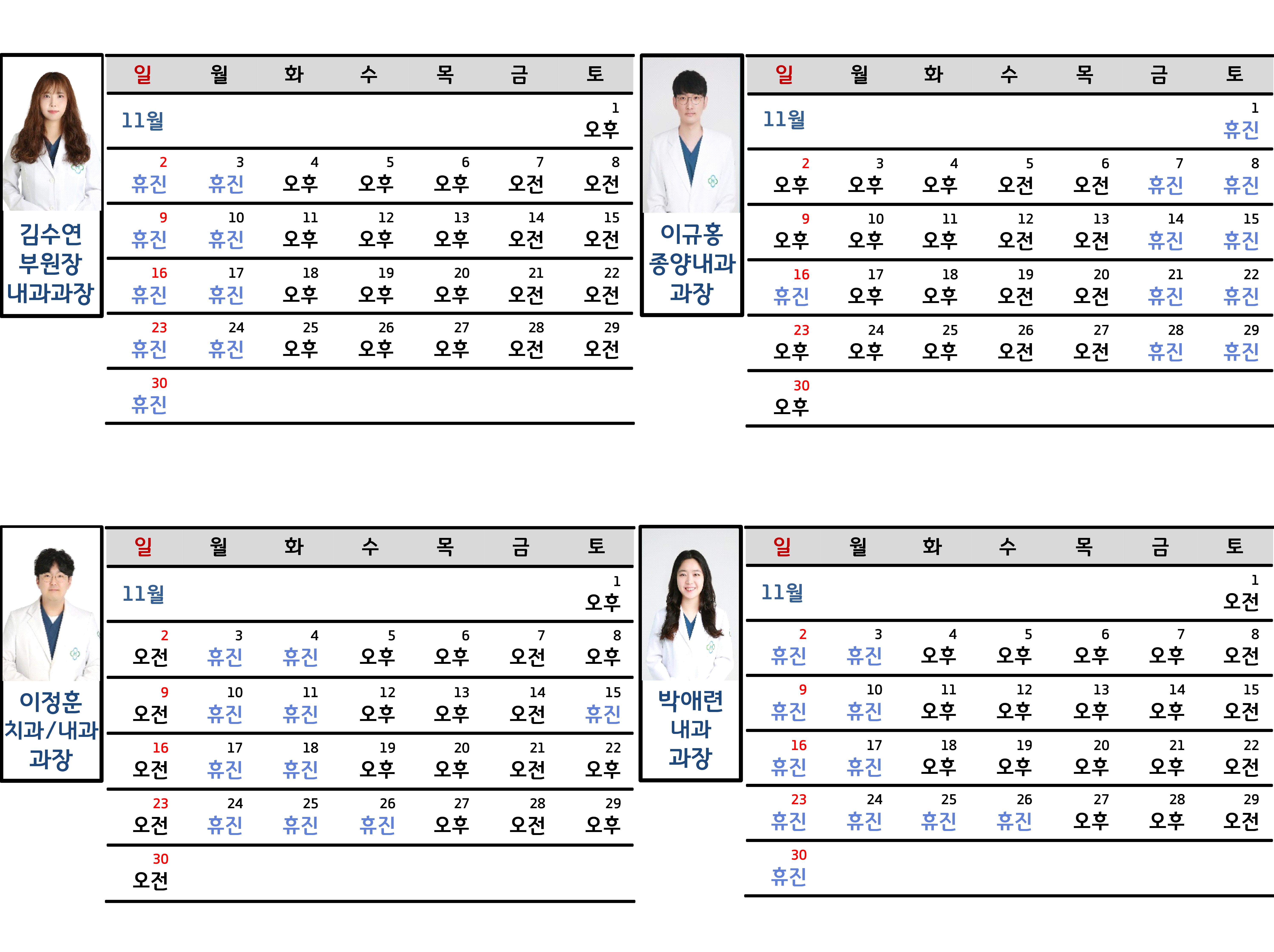2025년 11월 진료시간표 안내 (11/15 최종업데이트)