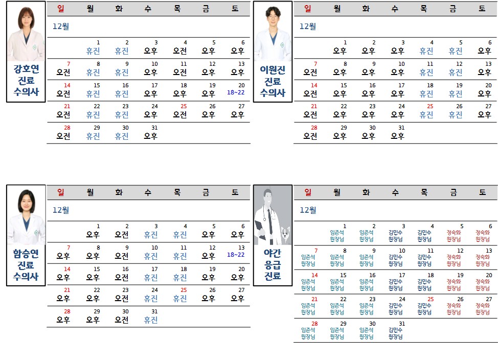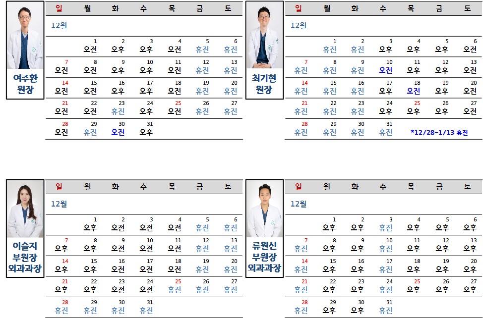 2025년 12월 진료시간표 안내 (12/10 최종업데이트)