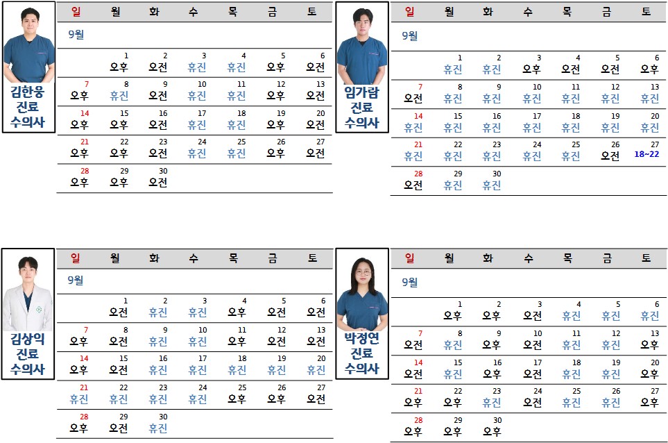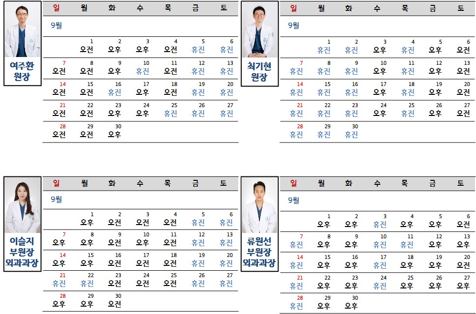 2025년 9월 진료시간표 안내