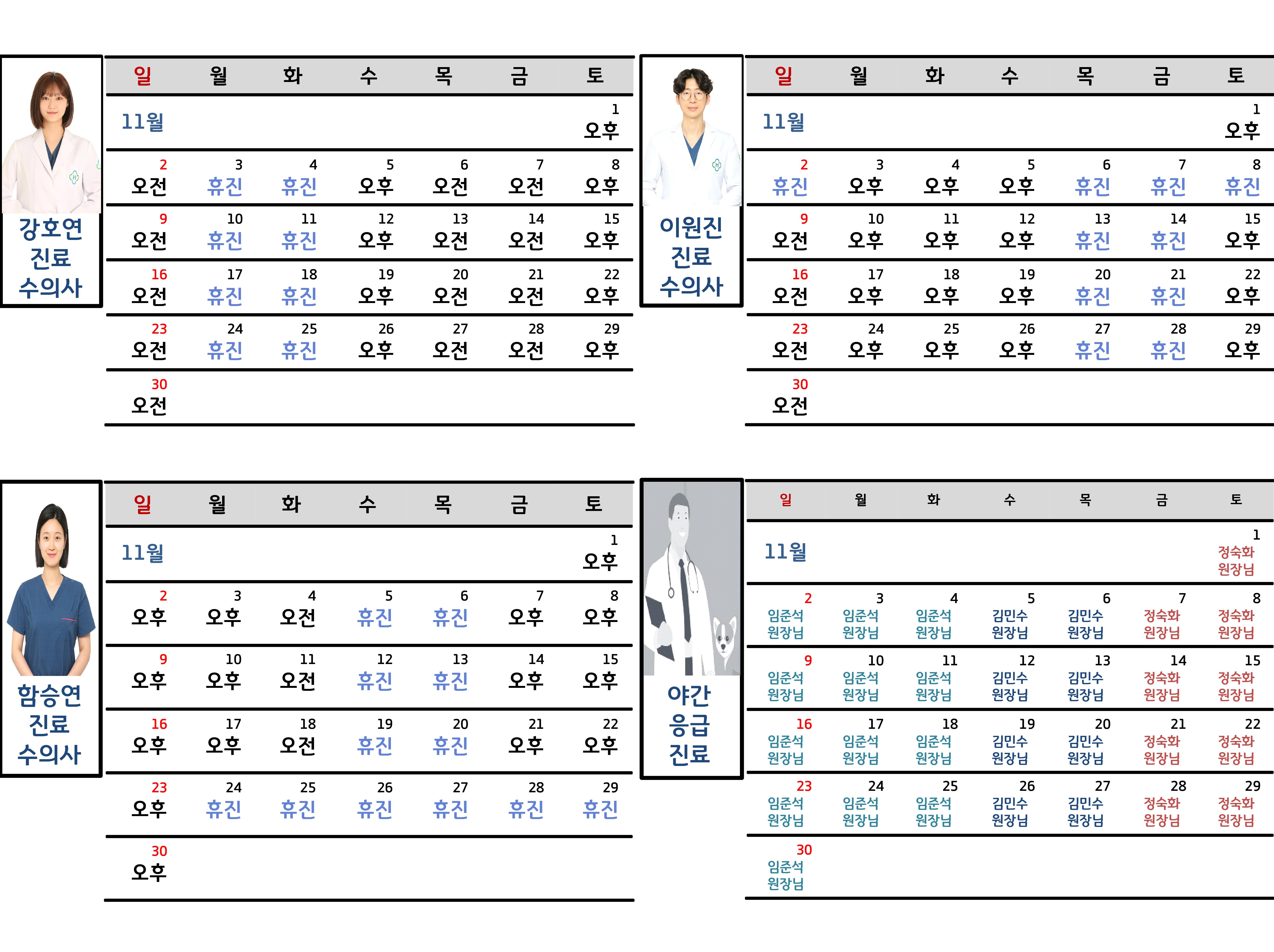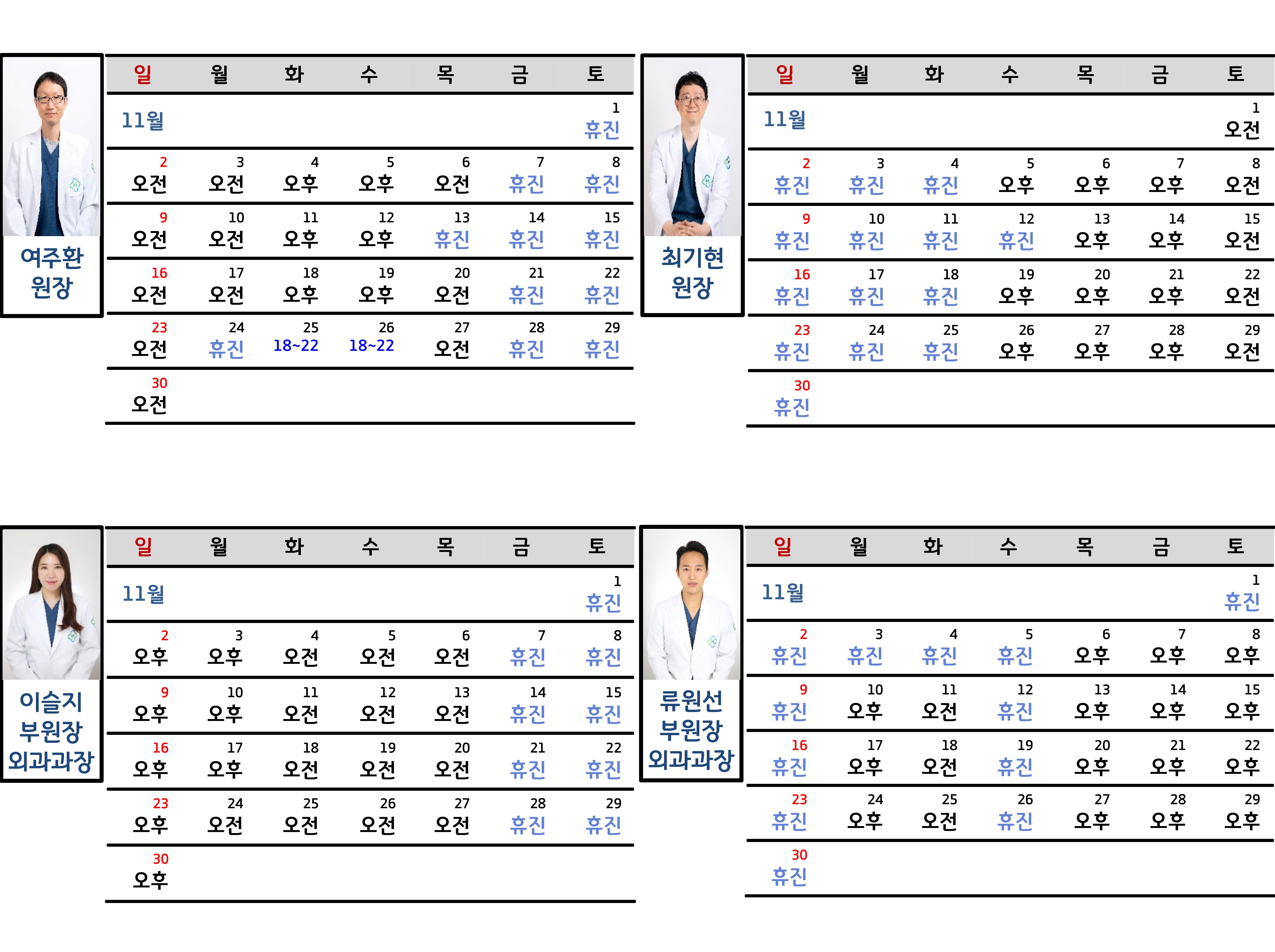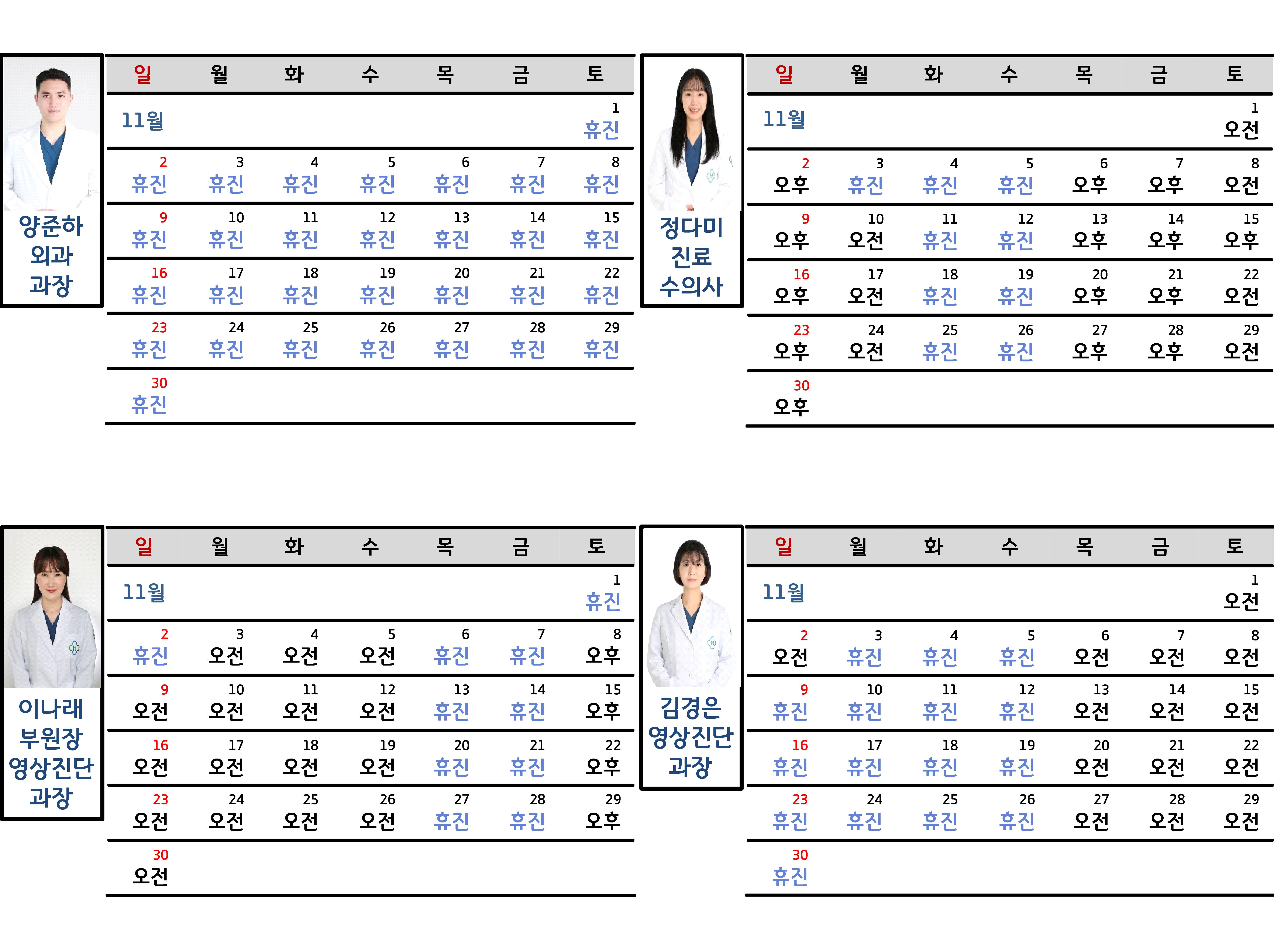 2025년 11월 진료시간표 안내 (11/15 최종업데이트)